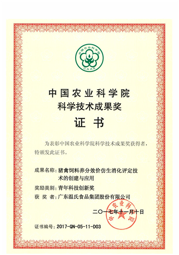 中国农业科学院科学手艺效果奖之青年科技立异奖-《猪禽饲料养分效价仿生消化评定手艺的建设与应用》